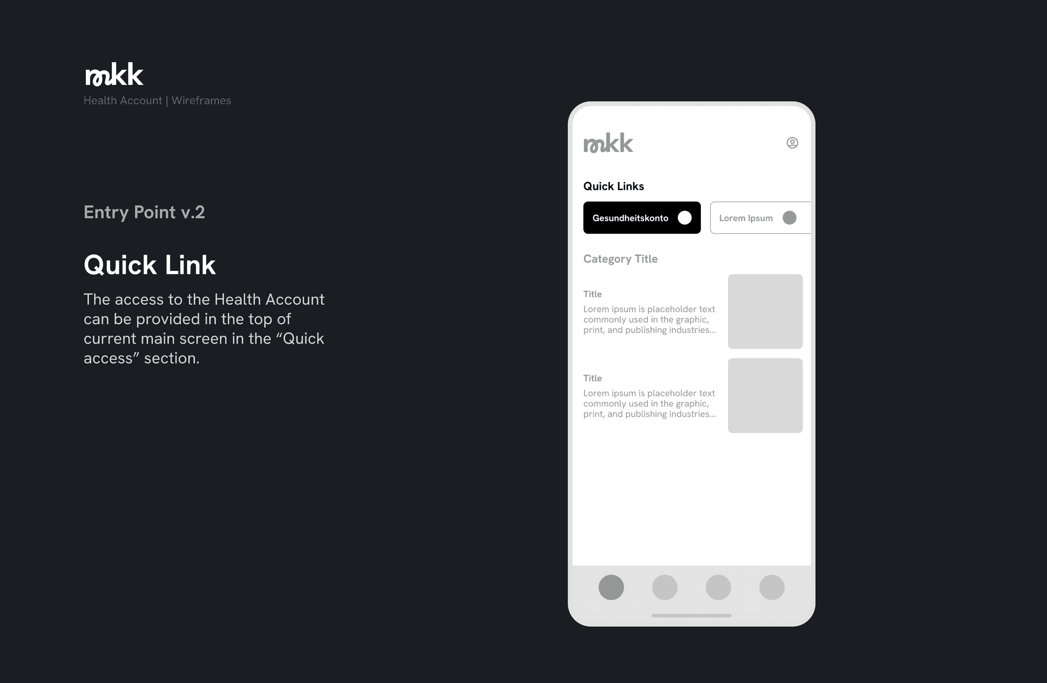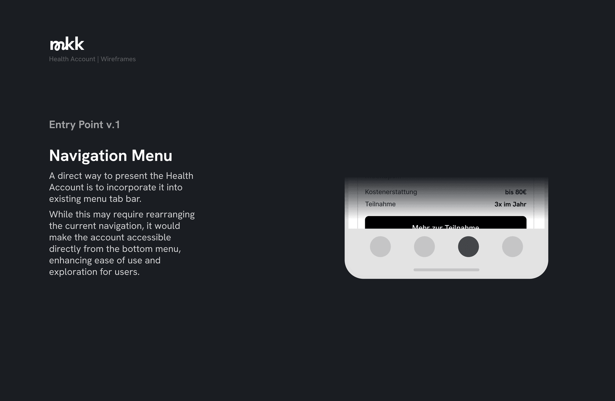 Before diving into the research phase, I started to develop the new feature concept based on our raw ideas and suggestions. One of the main challenge during this first step was to gain a clear understanding of users' navigation pattern within the existing app architecture and create a clear entry point to the new health account.