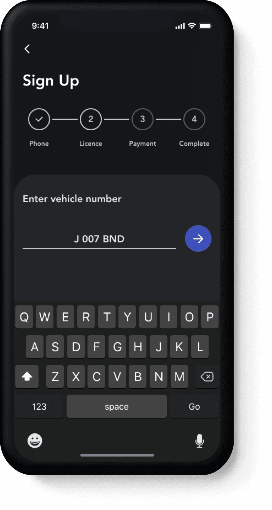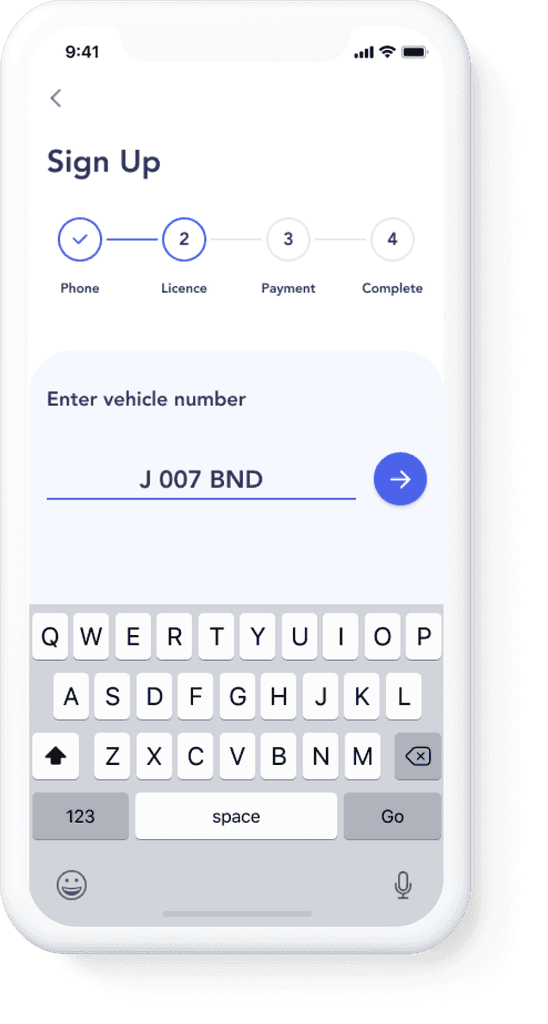 Entering the vehicle licence number