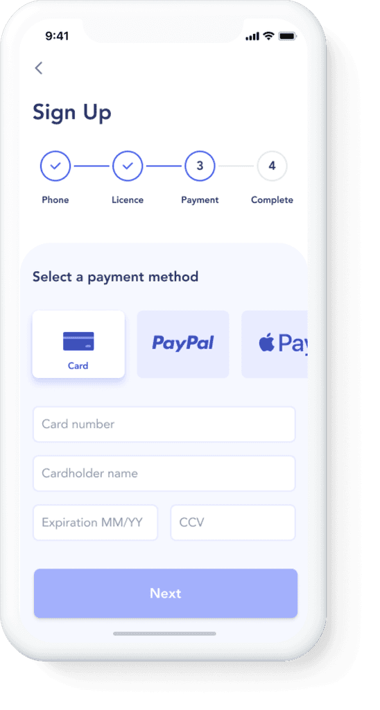 To ensure drivers will easily understand the app functionality, I included only necessary menu items and displayed them prominently.