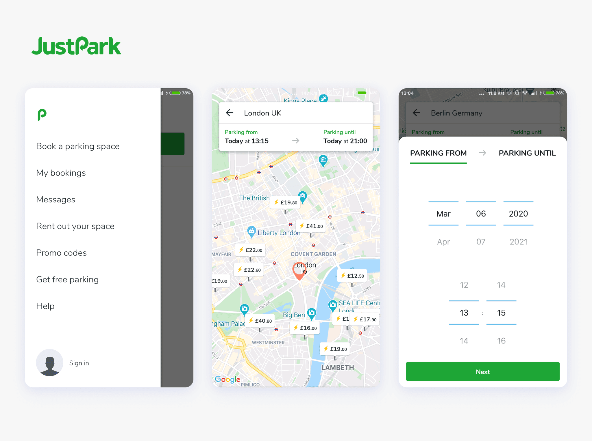 To achieve this, I compared several apps, including the European market leader EasyPark, the popular UK app JustPark, and the international parking app Parkman.