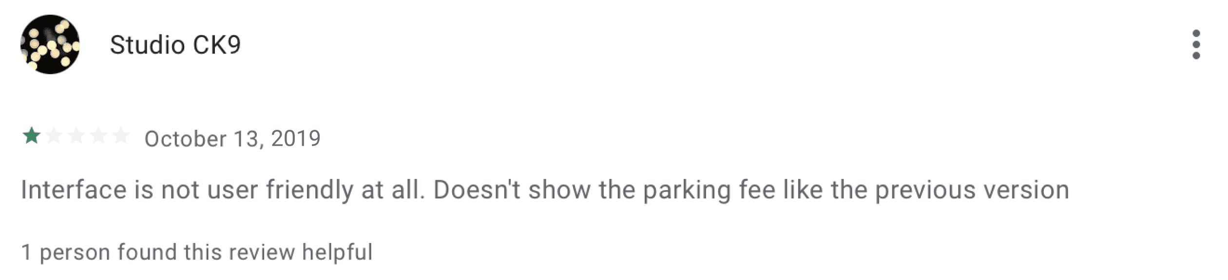 The interface is not user friendly and doesn't show the parking fee.